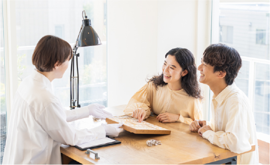 ふたりのスタイルに応じて、仕上げまでご自身で行う金属加工コース、職人が仕立てるオーダーメイドコースもご用意しております。