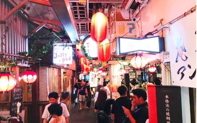 細い路地裏にオシャレな立ち飲み屋やバーが並ぶ『ハーモニカ横丁』で美味しいお食事とお酒はいかがでしょう。