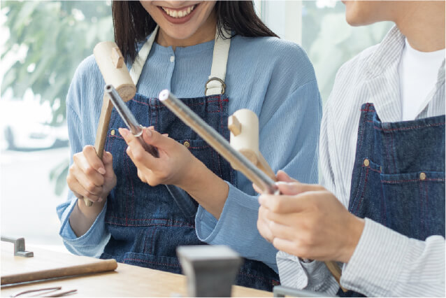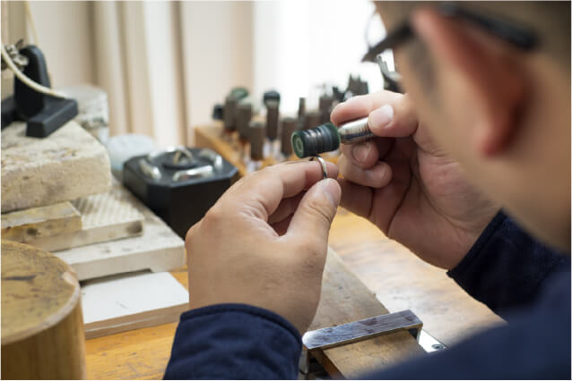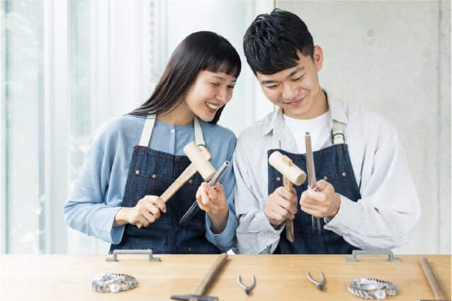 ふたりのスタイルに応じて、仕上げまでご自身で行う金属加工コース、職人が仕立てるオーダーメイドコースもご用意しております。