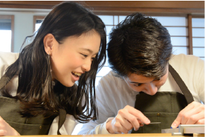 男女で加工をしている様子