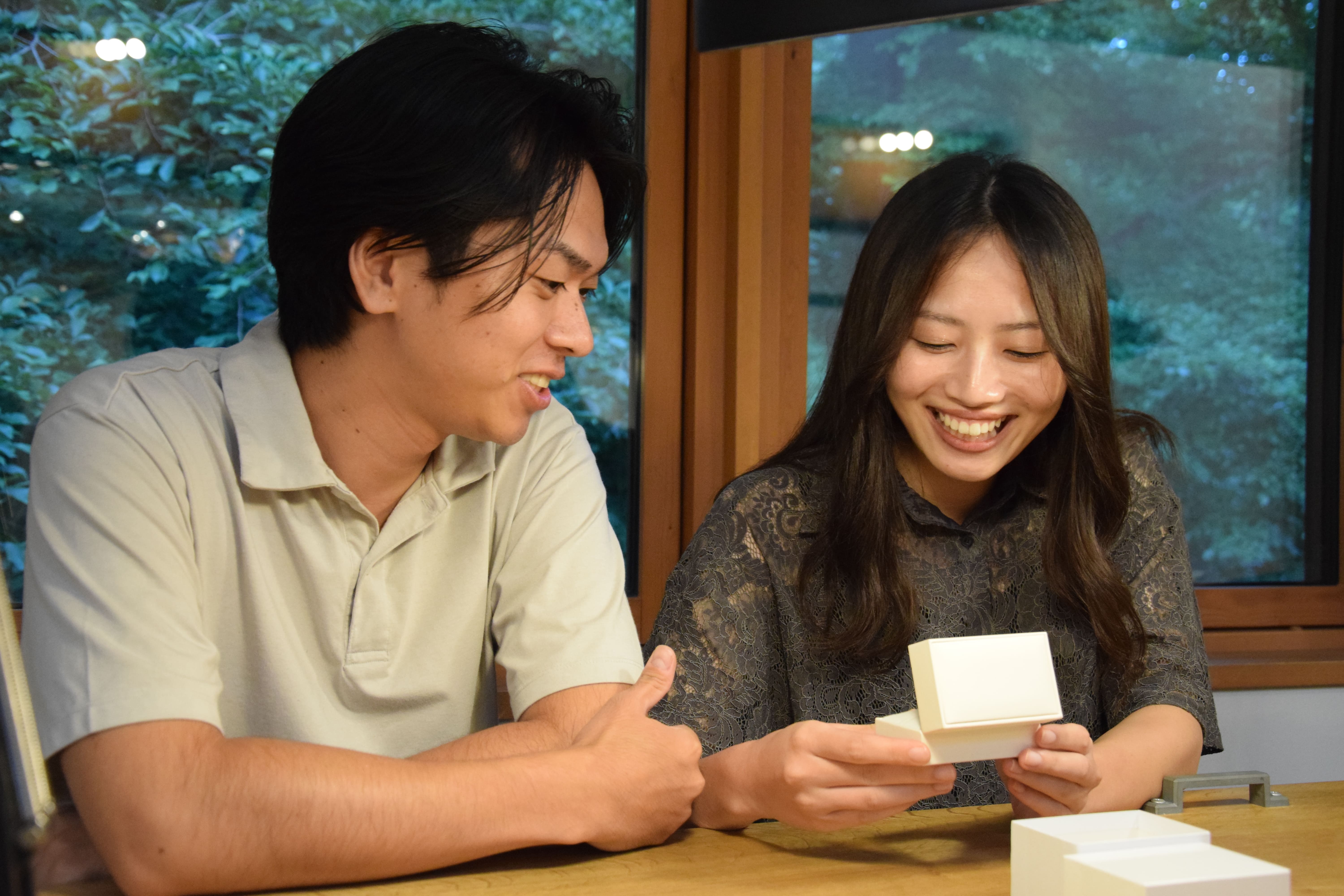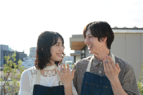 出来上がった指輪をつけてる夫婦の様子