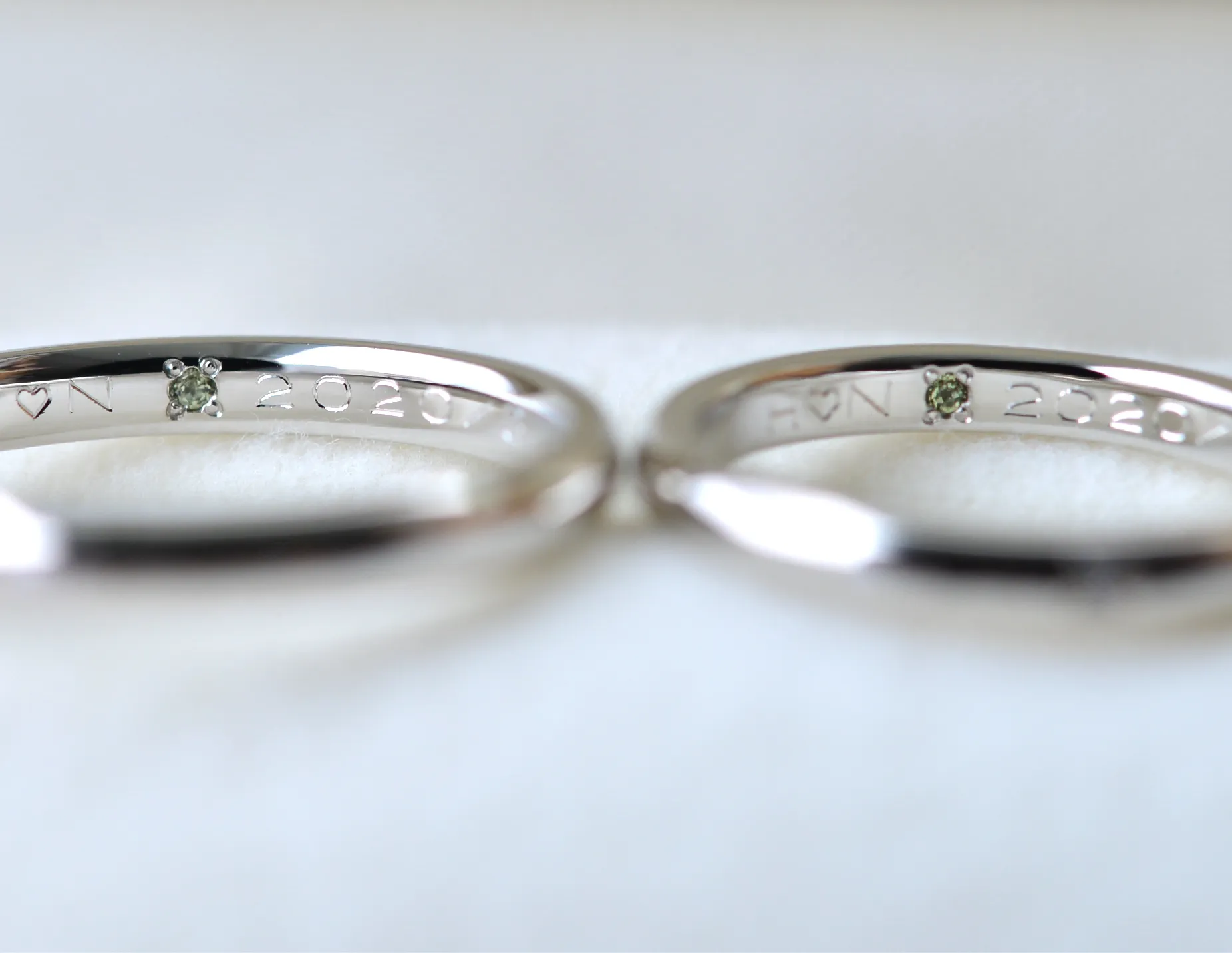 ふたりにしか見えない内側のコックインには誕生日やイニシャル、お互いへ向けたメッセージなどを好きな文字をお入れいたします。